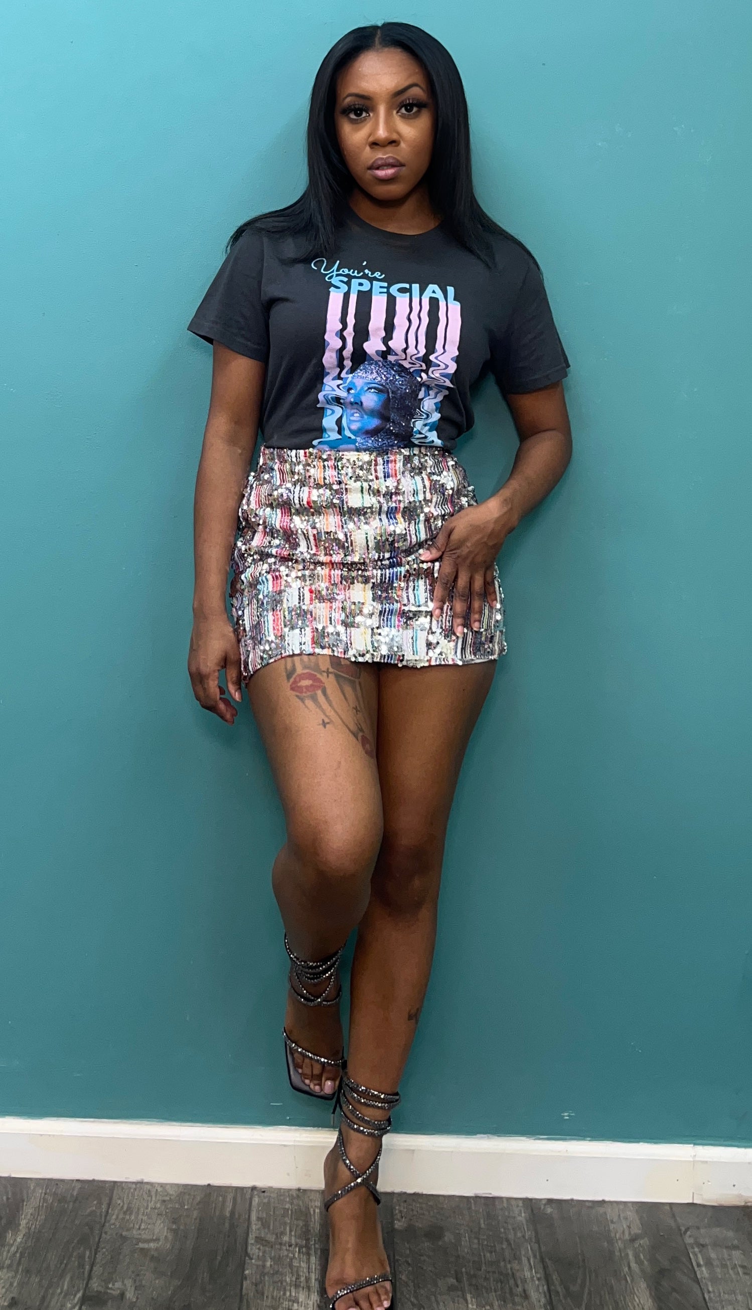 Sparkle to your heart's content with this fabulously fun confetti sequin skirt! Spread the rainbow vibes and make a statement with this mini masterpiece featuring multi-colored and multi-textured sequins, a comfy elastic waistband and high-waisted fit, and a secret zip faster on the side so you can shimmy in and out with ease. Let's get shook, y'all!